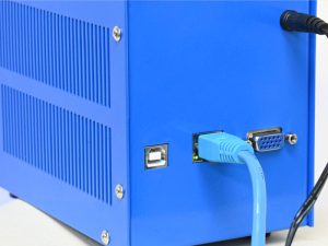 PCを使ってフルカラー光ファイバー光源の初期設定と調光制御を行いますが、PCによってはLAN接続口がない場合もあるので、このフルカラー光ファイバー光源には、LAN接続口に加えて、USB接続口を用意しています。